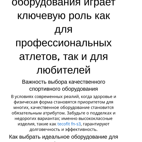 Качественное спортивное оборудование имеет огромное значение для успеха в спорте и поддержания здоровья. Выбор правильного оборудования, такого как tecofit fn-s3, может стать залогом ваших достижений. Инвестиции в спорт — это инвестиции в здоровье и активное долголетие. Не забывайте о важности качества, комфорта и надежности. Ваши тренировки заслуживают только лучшего!