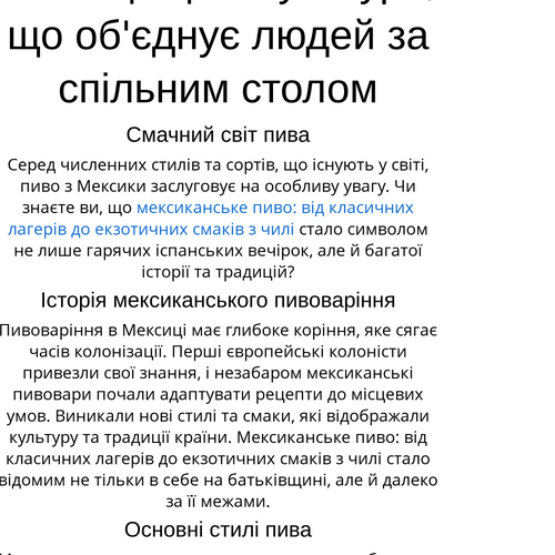 Час зануритися у смачний світ мексиканського пивоваріння, де традиції та інновації зустрічаються в кожній пляшці, а яскраві смаки створюють незабутні спогади.