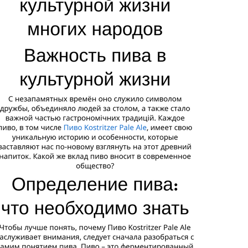 Чтобы лучше понять, почему Пиво Kostritzer Pale Ale заслуживает внимания, следует сначала разобраться с самим понятием пива. Пиво – это ферментированный напиток, получаемый из воды, солода, хмеля и дрожжей. Существует безліч сортів пива, и каждый из них имеет свои уникальные характеристики и способ приготовления.