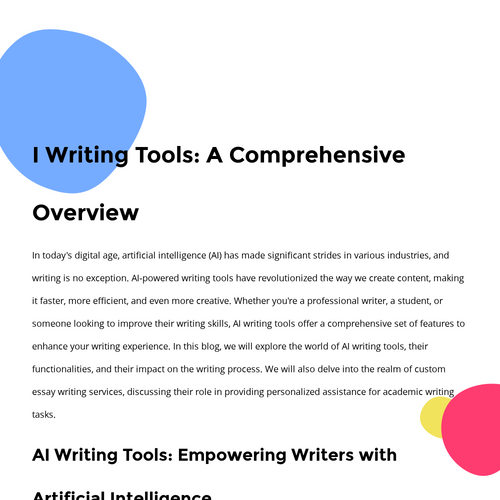 In today's digital age, artificial intelligence (AI) has made significant strides in various industries, and writing is no exception. AI-powered writing tools have revolutionized the way we create content, making it faster, more efficient, and even more creative. Whether you're a professional writer, a student, or someone looking to improve their writing skills, AI writing tools offer a comprehensive set of features to enhance your writing experience. In this blog, we will explore the world of AI writing tools, their functionalities, and their impact on the writing process. We will also delve into the realm of custom essay writing services, discussing their role in providing personalized assistance for academic writing tasks. So, let's dive in and discover how AI and custom essay writing services are transforming the way we write!