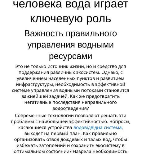Забота о водных ресурсах — это задача, которая требует комплексного подхода. Осознание значимости водовідвідна система и ее влияние на окружающую среду — важные шаги к устойчивому будущему. Решения, основанные на современных технологиях и соблюдении экологических норм, помогут обеспечить защиту водных ресурсов и создать безопасные условия для жизни. Помните, что правильное обращение с водой сегодня — это залог благополучия будущих поколений.