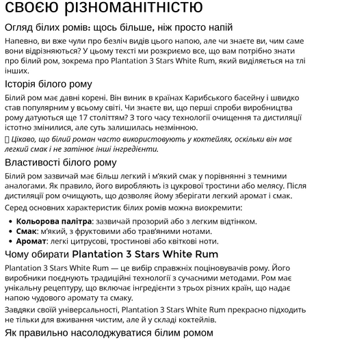 Напевно, ви вже чули про безліч видів цього напою, але чи знаєте ви, чим саме вони відрізняються? У цьому тексті ми розкриємо все, що вам потрібно знати про білий ром, зокрема про Plantation 3 Stars White Rum, який виділяється на тлі інших.