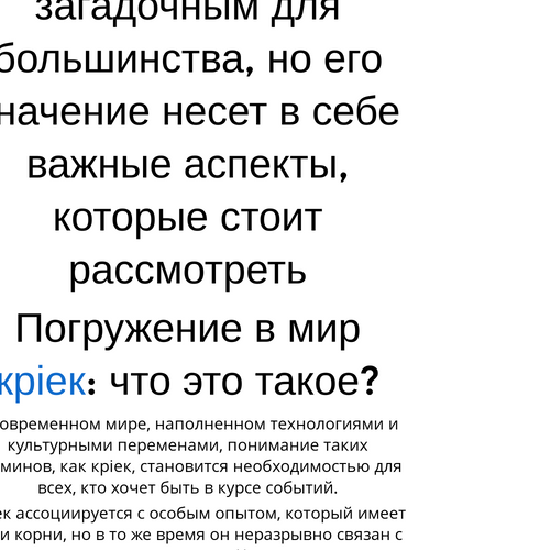 В современном мире, наполненном технологиями и культурными переменами, понимание таких терминов, как кріек, становится необходимостью для всех, кто хочет быть в курсе событий.