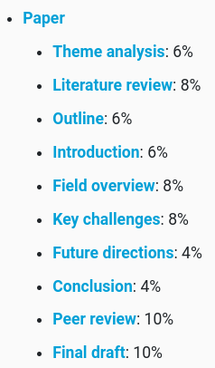 Paper is chunked into smaller assignments due periodically throughout the semester