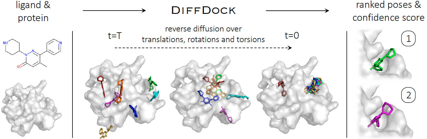 Protein-ligand docking can rapidly identify binding poses based on parameterized scoring functions and/or machine learning