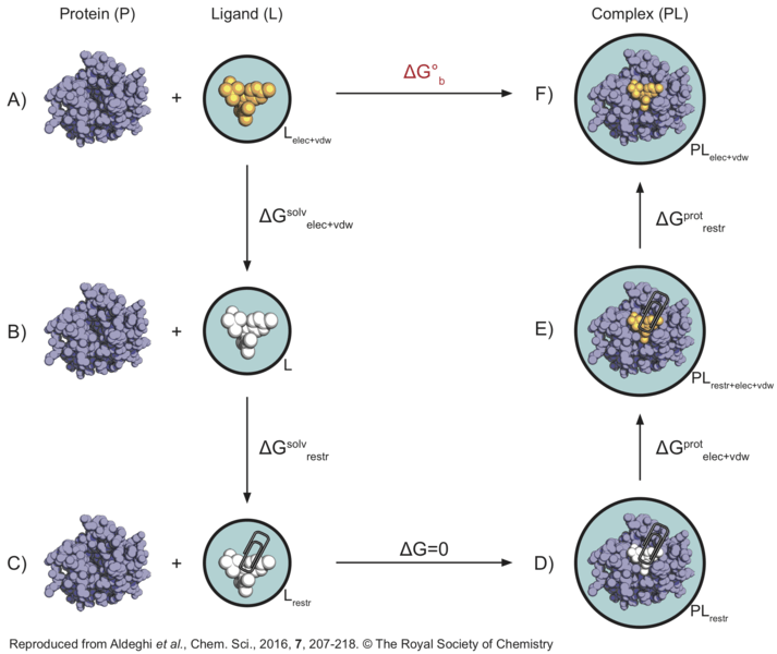 Alchemical simulations systematically turn off the ligand's interaction with proteins