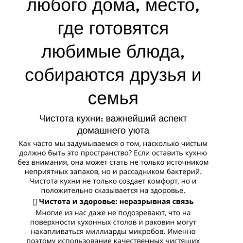 Помните, что чистая кухня — это не просто эстетика, это ваше здоровье и комфорт. Сохраняя порядок в этом месте, вы создаете основу для приятного времяпрепровождения с близкими и любимыми.