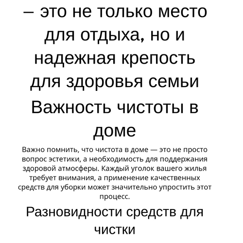 Важно помнить, что чистота в доме — это не просто вопрос эстетики, а необходимость для поддержания здоровой атмосферы. Каждый уголок вашего жилья требует внимания, а применение качественных средств для уборки может значительно упростить этот процесс.