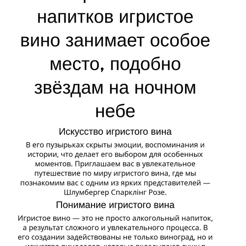 💡 Знаете ли вы, что игристое вино имеет долгое и увлекательное прошлое? Его появление датируется ещё XVI веком, а благодаря современным технологиям качество изделий стало значительно выше.