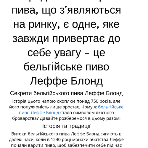 Історія цього напою охоплює понад 750 років, але його популярність лише зростає. Чому ж бельгійське пиво Леффе Блонд стало символом якісного броварства? Давайте розберемося в цьому разом!