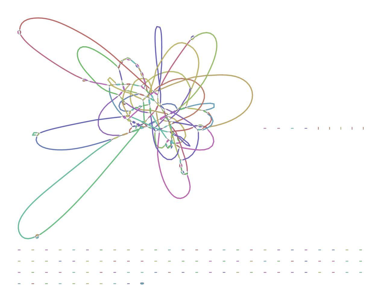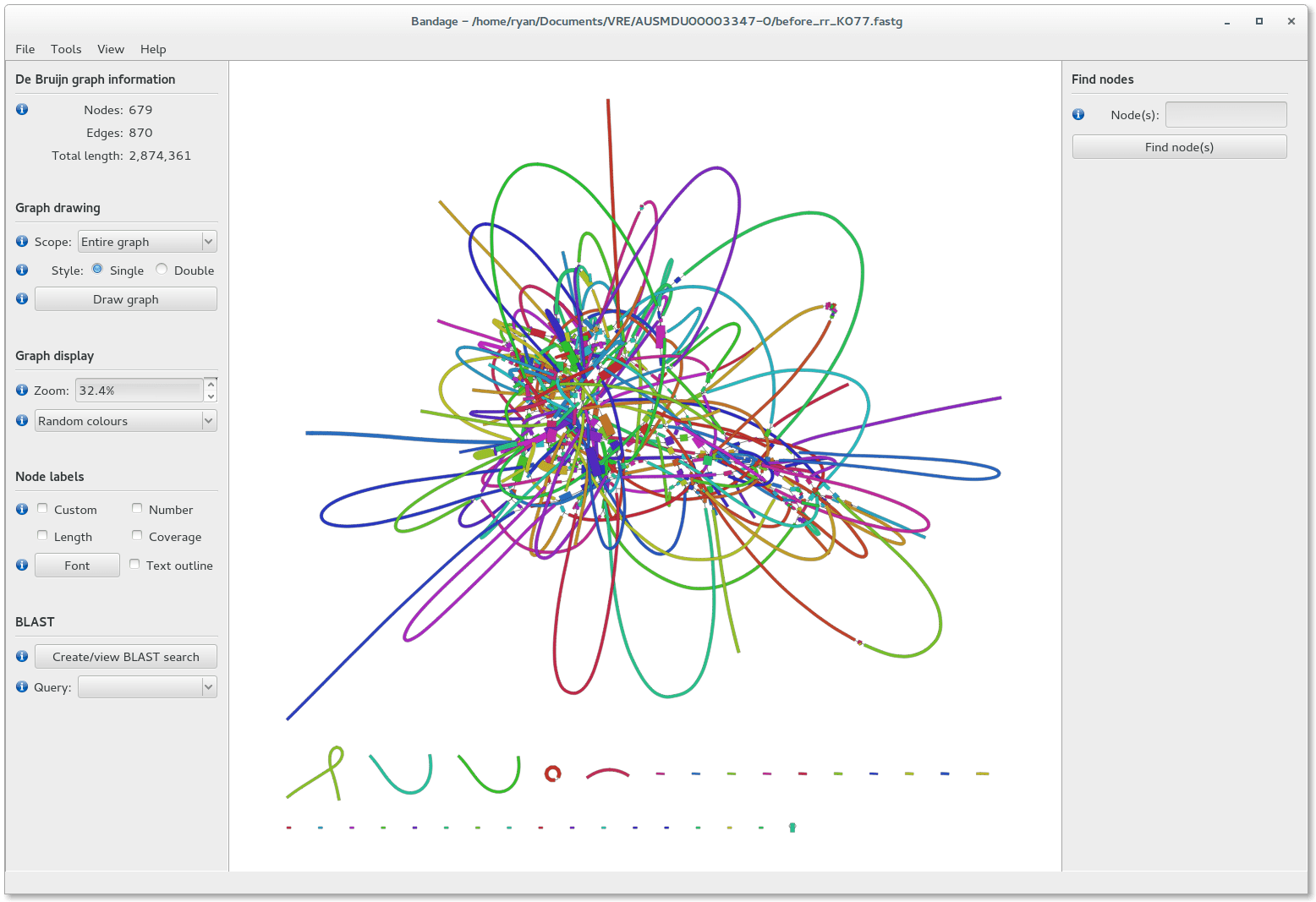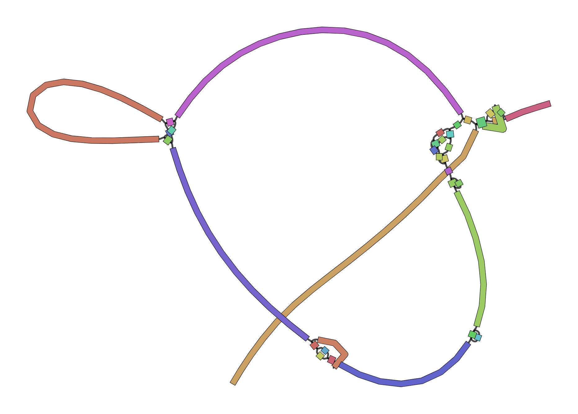 Each solid line is called a "node" (Why? I have no idea.) and represent a contig
