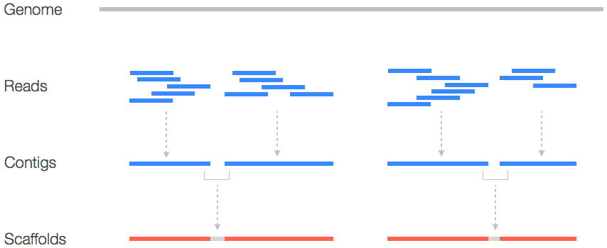 Scaffolds are higher-order assemblies formed by ordering and orienting contigs