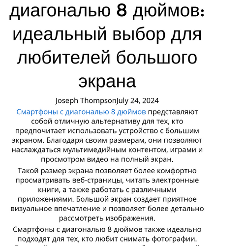 Если вы ищете смартфон с большим экраном, то смартфоны с диагональю 8 дюймов стоит обратить внимание. Они предлагают широкие возможности для развлечений, работы и творчества. Окунитесь в мир больших и красочных экранов с этими устройствами! 😊