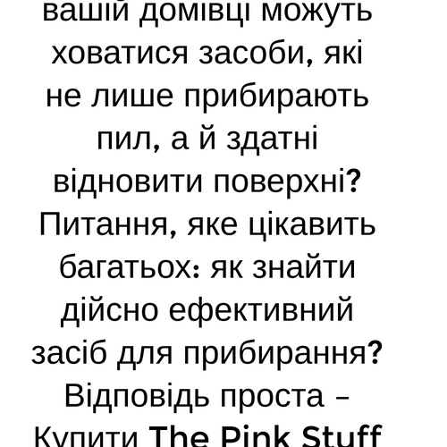 Купити The Pink Stuff – це інвестиція не лише в чистоту, а й в комфорт вашого домашнього середовища. Ви обираєте ефективність, безпеку та зручність разом із цим універсальним засобом.