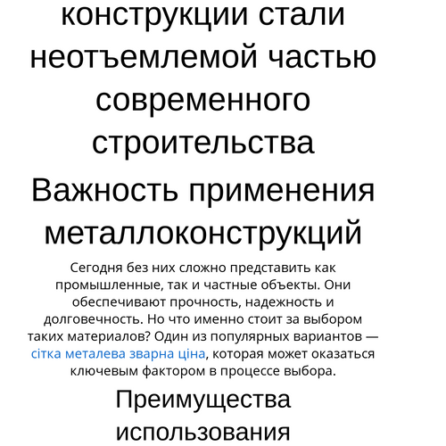 Сегодня без них сложно представить как промышленные, так и частные объекты. Они обеспечивают прочность, надежность и долговечность. Но что именно стоит за выбором таких материалов? Один из популярных вариантов — сітка металева зварна ціна, которая может оказаться ключевым фактором в процессе выбора.