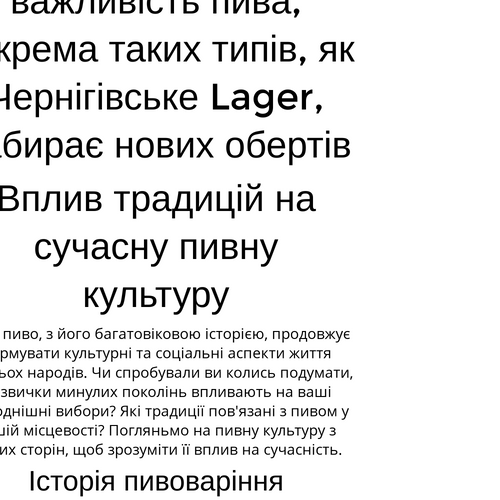 Саме пиво, з його багатовіковою історією, продовжує формувати культурні та соціальні аспекти життя багатьох народів. Чи спробували ви колись подумати, як звички минулих поколінь впливають на ваші сьогоднішні вибори? Які традиції пов'язані з пивом у вашій місцевості? Погляньмо на пивну культуру з різних сторін, щоб зрозуміти її вплив на сучасність.