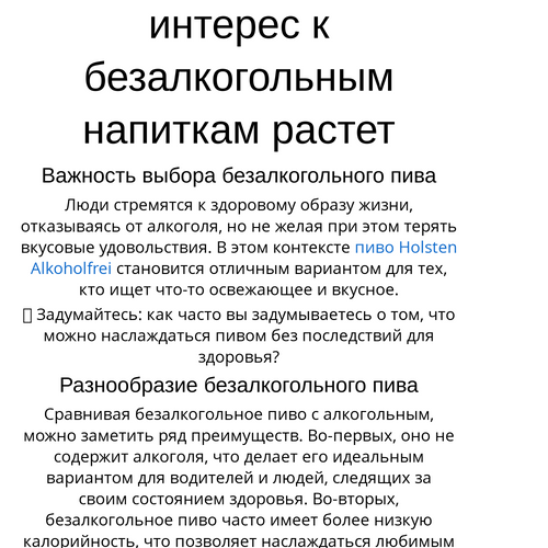Люди стремятся к здоровому образу жизни, отказываясь от алкоголя, но не желая при этом терять вкусовые удовольствия. В этом контексте пиво Holsten Alkoholfrei становится отличным вариантом для тех, кто ищет что-то освежающее и вкусное.