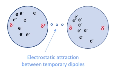 Dispersion: Electrons in molecules are constantly moving, leading to temporary uneven distributions that induce dipoles in neighboring molecules