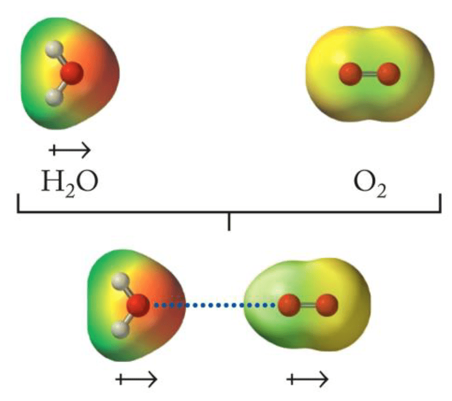 Induction: The electric field of a polar molecule distorts the electron cloud of a nonpolar molecule, creating a temporary dipole