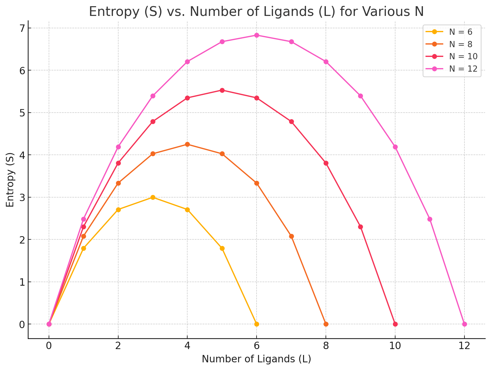 How to interpret this: Pick a number of ligands and move to the right (L - 1), does entropy go up or down?