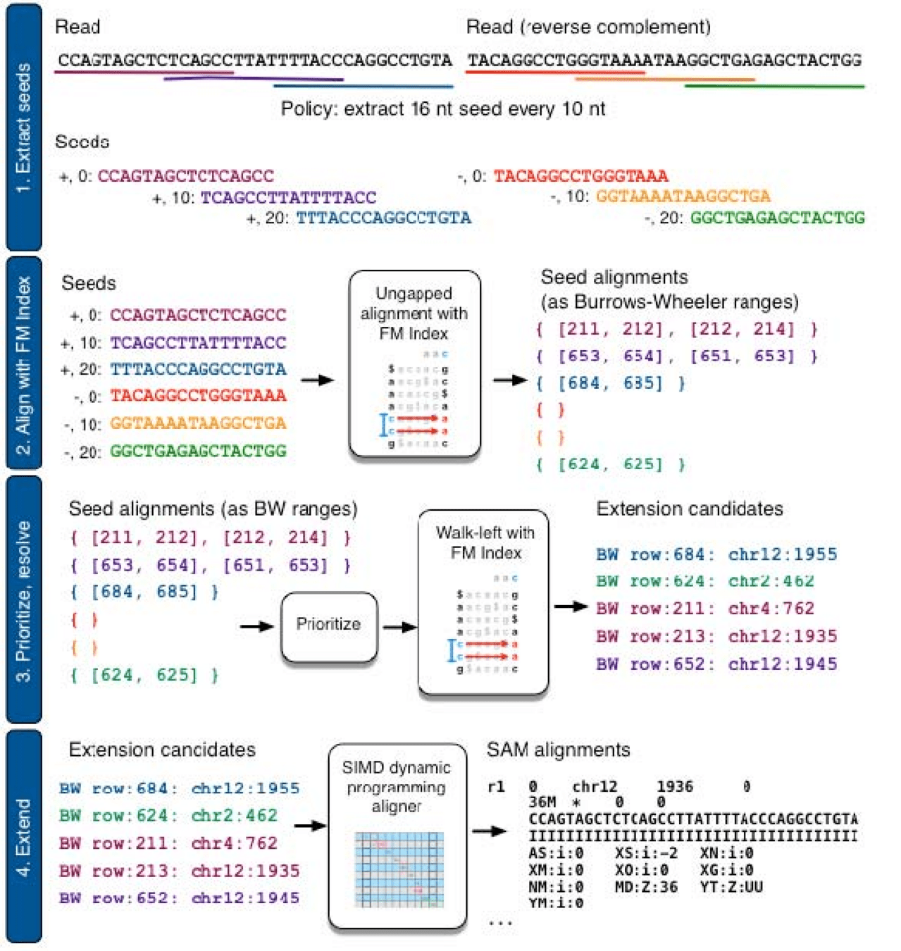3. Extend alignments starting from k-mer seeds