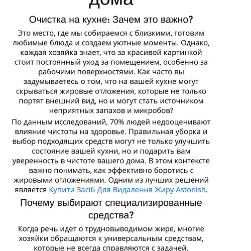Когда речь идет о трудновыводимом жире, многие хозяйки обращаются к универсальным средствам, которые не всегда справляются с задачей. Специализированные средства, такие как Купити Засіб Для Видалення Жиру Astonish, разрабатываются именно для удаления упорного жира, обеспечивая более глубокую и эффективную чистку.