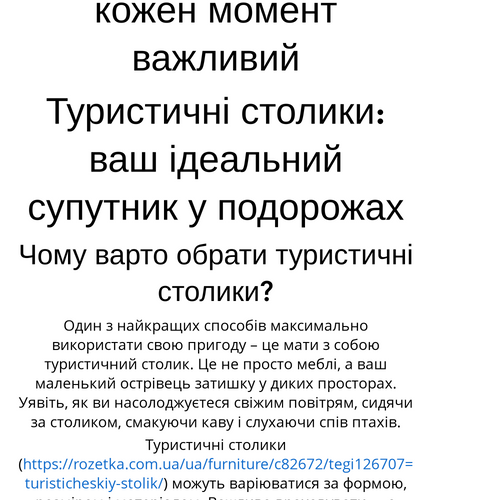 Туристичні столики – це ваш невід’ємний супутник у кожній подорожі. Виберіть той, що підходить саме вам, і насолоджуйтеся кожною миттю на природі!