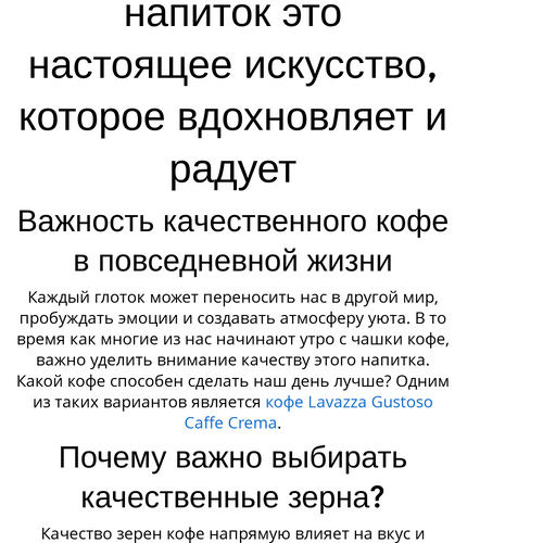 Каждый глоток может переносить нас в другой мир, пробуждать эмоции и создавать атмосферу уюта. В то время как многие из нас начинают утро с чашки кофе, важно уделить внимание качеству этого напитка. Какой кофе способен сделать наш день лучше? Одним из таких вариантов является кофе Lavazza Gustoso Caffe Crema.