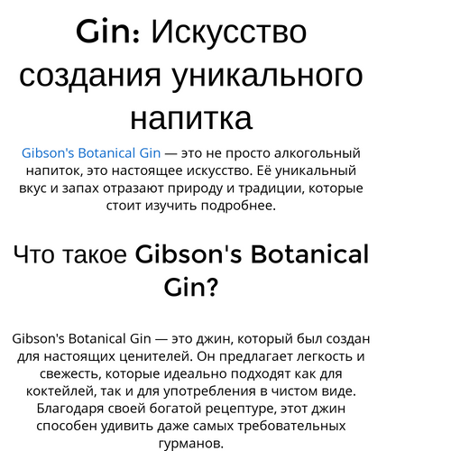 Gibson's Botanical Gin — это не просто алкогольный напиток, это настоящее искусство. Её уникальный вкус и запах отразают природу и традиции, которые стоит изучить подробнее.