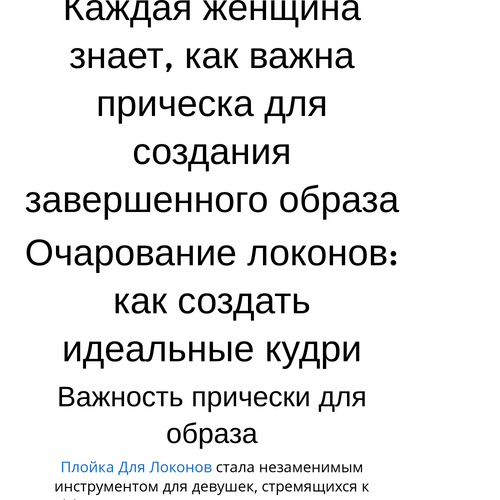 Локоны – это не просто прическа; это способ выразить себя. Плойка Для Локонов позволяет создавать множество образов, от романтичных волн до строго очерченных кудрей. Каждый раз, когда вы берёте плойку, помните о важности ухода за волосами и о том, что ваша прическа – это продолжение вашего стиля и индивидуальности. Создавайте, экспериментируйте и не бойтесь быть собой!