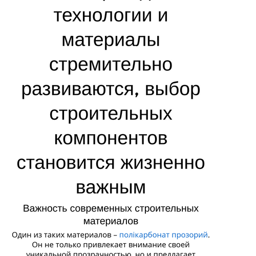 Полікарбонат прозорий не только улучшает функциональные качества зданий, но и меняет представление о современных материалах для строительства.
