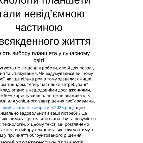 Але який планшет вибрати в 2025 році, щоб максимально задовольнити ваші потреби? Це питання, яке вимагає ретельного аналізу та розуміння нових технологій. У цьому тексті ми розглянемо ключові аспекти вибору планшета, які слугуватимуть вам у прийнятті обґрунтованого рішення.