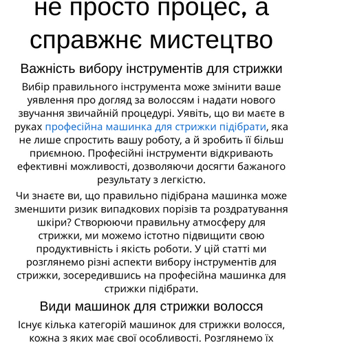 Правильний вибір машинки для стрижки може включати кілька важливих аспектів.
