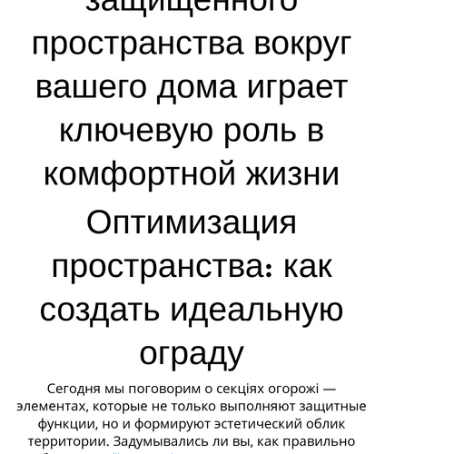 Секції огорожі — это не просто элемент безопасности, это часть вашего пространства, которая его обрамляет и делает более гармоничным. Спланируйте свое окружение, и пусть ваше пространство станет отражением вашей индивидуальности.