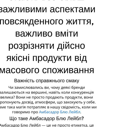 Обираючи Амбасадор Блю Лейбл, ви підтримуєте якість, традиції та етичність. Це не просто споживання продукту, а можливість стати частиною більшого руху, який цінує смак і відповідальність. Ваша свідомість і вибір формують майбутнє, тому не бійтеся експериментувати з якісними продуктами, які роблять цей світ смачнішим і кращим.