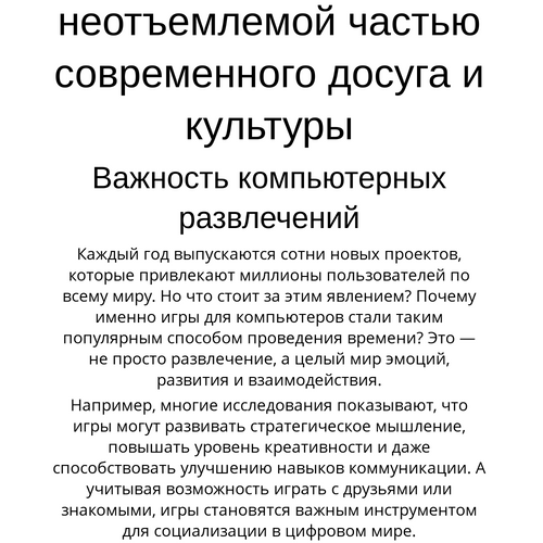 Например, многие исследования показывают, что игры могут развивать стратегическое мышление, повышать уровень креативности и даже способствовать улучшению навыков коммуникации. А учитывая возможность играть с друзьями или знакомыми, игры становятся важным инструментом для социализации в цифровом мире.