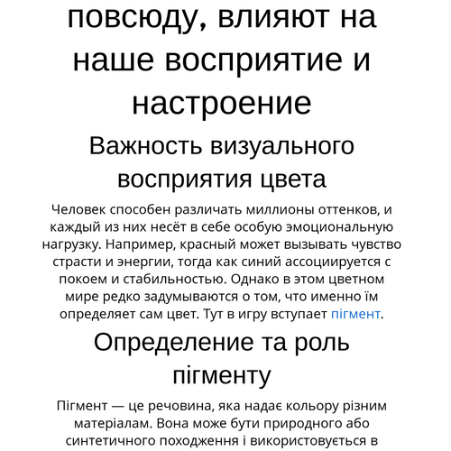 Человек способен различать миллионы оттенков, и каждый из них несёт в себе особую эмоциональную нагрузку. Например, красный может вызывать чувство страсти и энергии, тогда как синий ассоциируется с покоем и стабильностью. Однако в этом цветном мире редко задумываются о том, что именно їм определяет сам цвет. Тут в игру вступает пігмент.