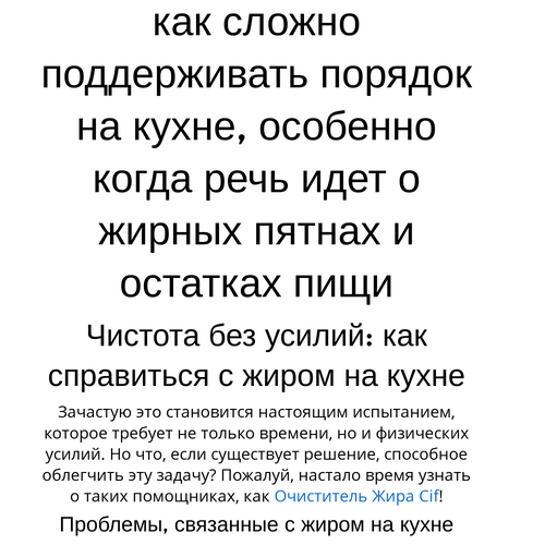 Зачастую это становится настоящим испытанием, которое требует не только времени, но и физических усилий. Но что, если существует решение, способное облегчить эту задачу? Пожалуй, настало время узнать о таких помощниках, как Очиститель Жира Cif!