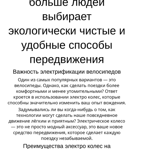 Электрификация велосипедов — это не просто тренд, а настоящая революция в мире транспорта. Не упустите возможность стать частью этого движения. Путешествуйте комфортно, выбирая купить электро колесо на велосипед для новых приключений.