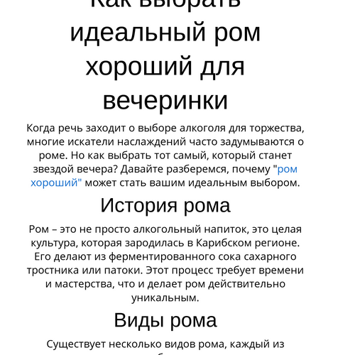 Когда речь заходит о выборе алкоголя для торжества, многие искатели наслаждений часто задумываются о роме. Но как выбрать тот самый, который станет звездой вечера? Давайте разберемся, почему "ром хороший" может стать вашим идеальным выбором.