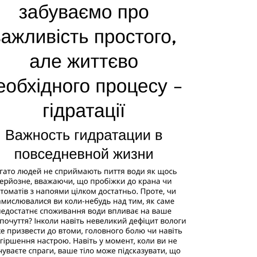 Уявіть собі, що ваша енергія – це річка, а вода – її джерело. Без достатньої кількості води річка пересихає, сповільнюючи рух життя. Таким чином, вміння правильно контролювати споживання води може стати запорукою не лише здоров'я, а й покращення якості життя в цілому.