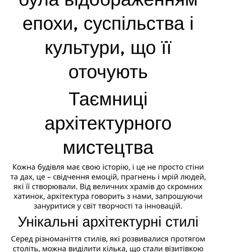 Кожна будівля має свою історію, і це не просто стіни та дах, це – свідчення емоцій, прагнень і мрій людей, які її створювали. Від величних храмів до скромних хатинок, архітектура говорить з нами, запрошуючи зануритися у світ творчості та інновацій.