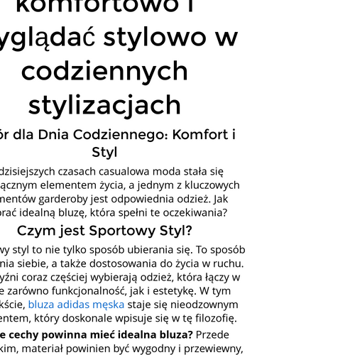 Sportowy styl to nie tylko sposób ubierania się. To sposób wyrażania siebie, a także dostosowania do życia w ruchu. Mężczyźni coraz częściej wybierają odzież, która łączy w sobie zarówno funkcjonalność, jak i estetykę. W tym kontekście, bluza adidas męska staje się nieodzownym elementem, który doskonale wpisuje się w tę filozofię.