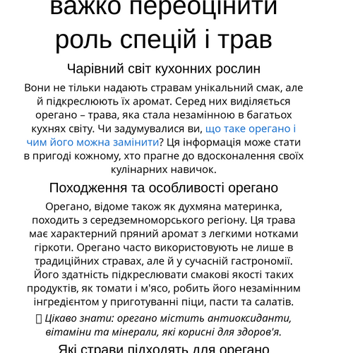 💡 Цікаво знати: орегано містить антиоксиданти, вітаміни та мінерали, які корисні для здоров'я.