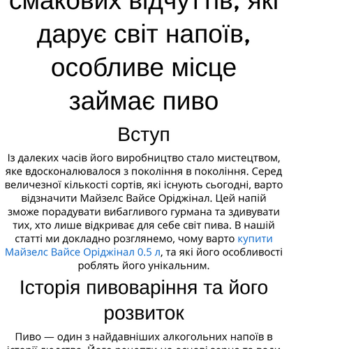 Пам'ятайте, що пиво — це не просто напій, це культура, це традиція, це історія, яку потрібно пережити на власному досвіді. І Майзелс Вайсе Оріджінал — чудова можливість зануритися в цю культуру. Відкрийте для себе новий смаковий досвід!