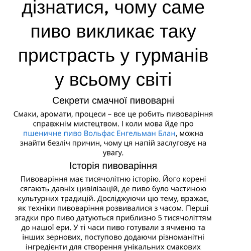 Смаки, аромати, процеси – все це робить пивоваріння справжнім мистецтвом. І коли мова йде про пшеничне пиво Вольфас Енгельман Блан, можна знайти безліч причин, чому ця напій заслуговує на увагу.
