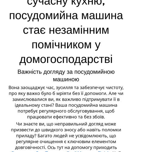 Вона заощаджує час, зусилля та забезпечує чистоту, про яку важко було б мріяти без її допомоги. Але чи замислювалися ви, як важливо підтримувати її в ідеальному стані? Ваша посудомийна машина потребує регулярного обслуговування, щоб працювати ефективно та без збоїв.
