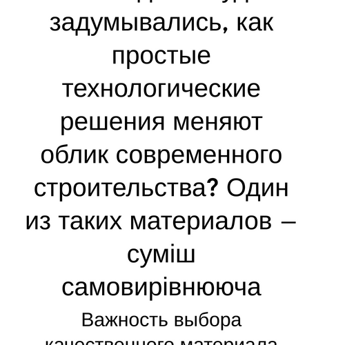 Мы живем в эпоху, когда качественные материалы становятся не просто удобством, а необходимостью. Суміш самовирівнююча — это не просто тренд, а реальный шаг к улучшению качества жизни.