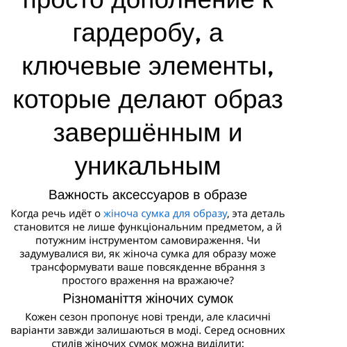 Чи знаєте ви, що правильно підібрана жіноча сумка для образу може підкреслити вашу індивідуальність?