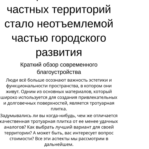 Важность выбора правильной тротуарной плитки для вашего проекта невозможно переоценить. Она становится сердцем вашего двора, обеспечивая не только эстетическую привлекательность, но и практическую функциональность. Заботьтесь о своём пространстве, и пусть оно будет радовать вас долгие годы.